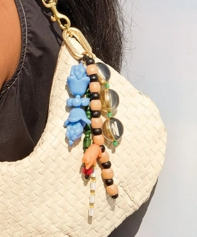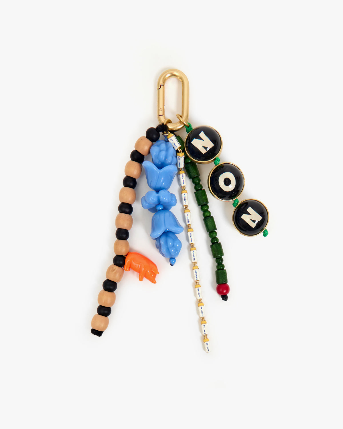 - Oui Non (yes no) fob features a strand of butter charms, wooden beads, flower beads & an orange lucky pig