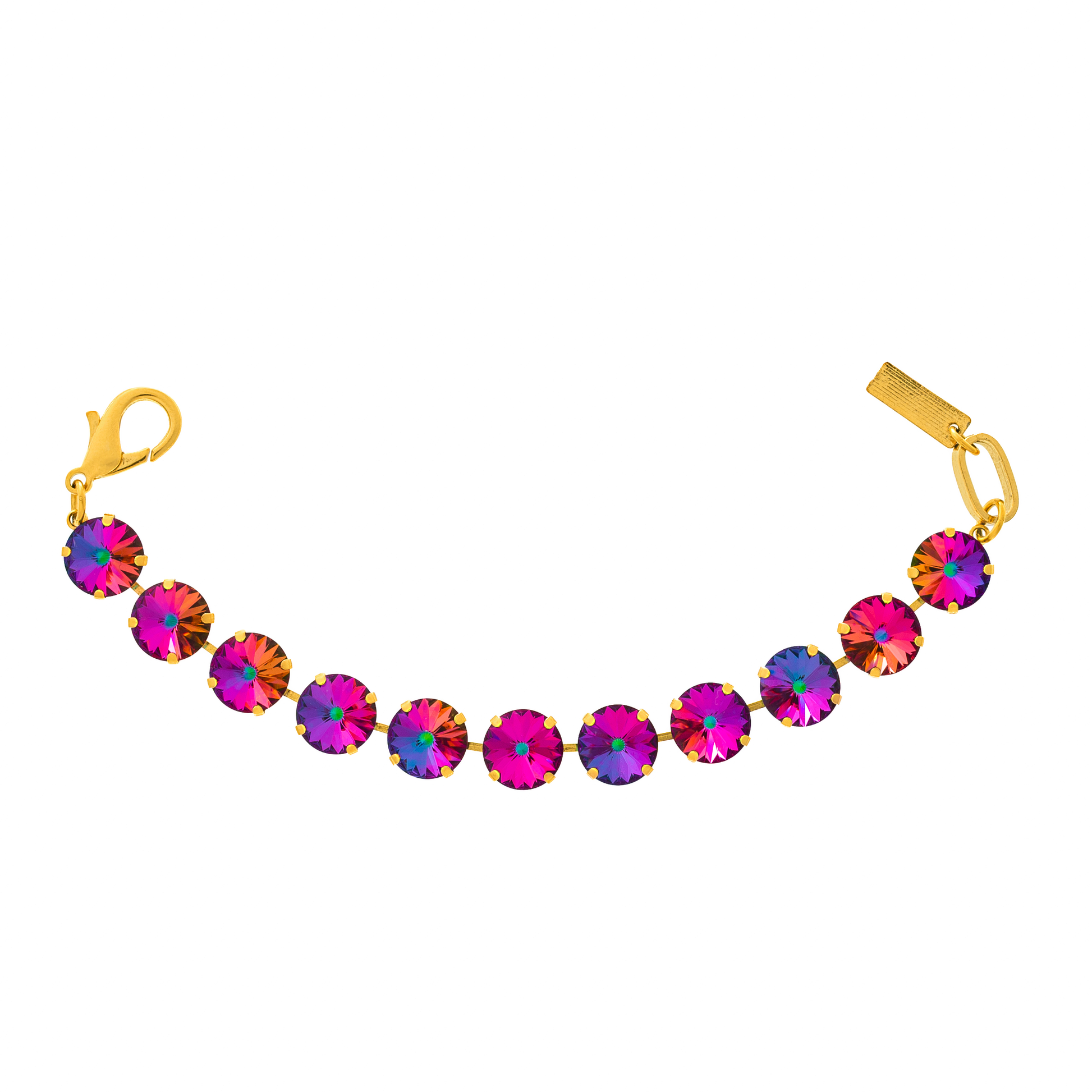 Add a touch of sparkle and shine to your look with the Croatia in Electra 1 Bracelet! Made with antique gold plating and high-quality crystals, this 6.5-inch stunner is the perfect accessory for any occasion. Show off your unique style with this handmade piece, crafted with love in Canada.